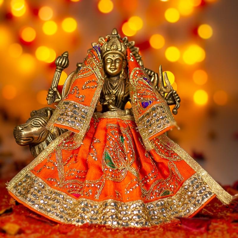 "I was looking for a special dress for Durga Maa, and I found it here! The colors, fabric, and design are so elegant and vibrant. It truly enhances the beauty of our idol and brings a sense of peace to our prayers!"